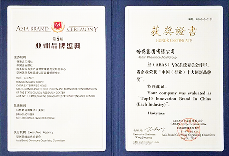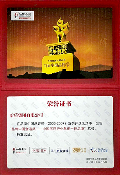 品牌中國(guó)金譜獎(jiǎng)——中國(guó)醫(yī)藥行業(yè)年度十佳品牌