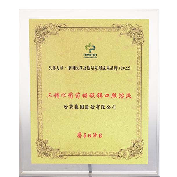 2022頭部力量·中國(guó)醫(yī)藥高質(zhì)量發(fā)展成果品牌葡萄糖酸鋅