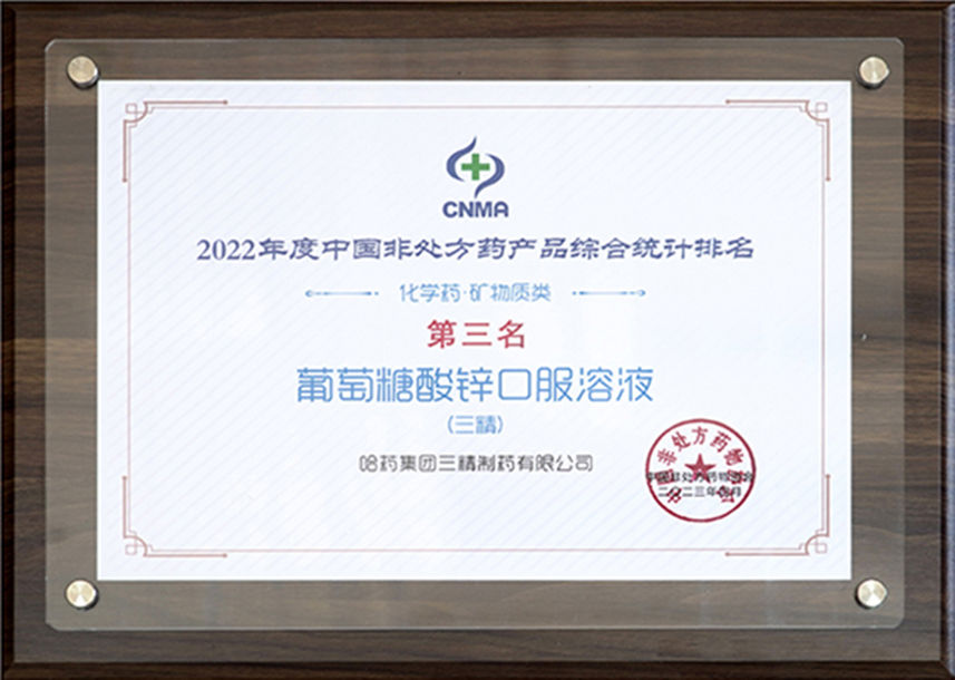 2022年度中國(guó)非處方藥產(chǎn)品綜合統(tǒng)計(jì)排名第三名葡萄糖酸鋅