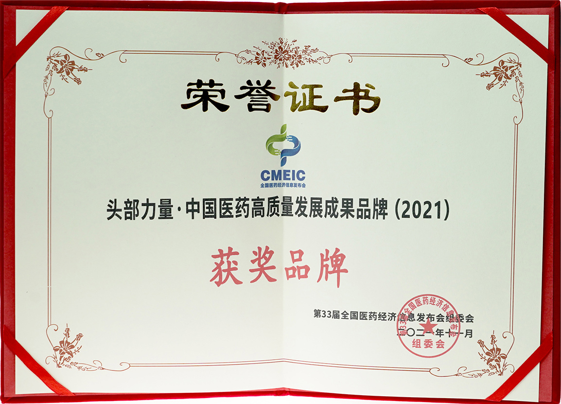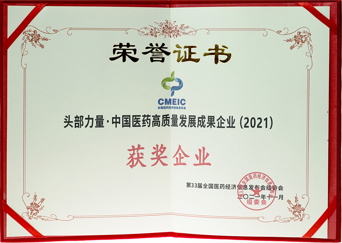 2021頭部力量·中國(guó)醫(yī)藥高質(zhì)量發(fā)展成果品牌