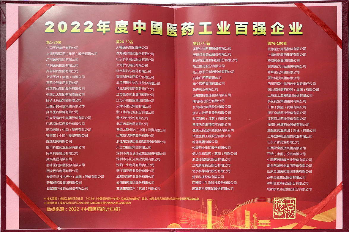 2022年度中國(guó)醫(yī)藥工業(yè)百?gòu)?qiáng)企業(yè)67名
